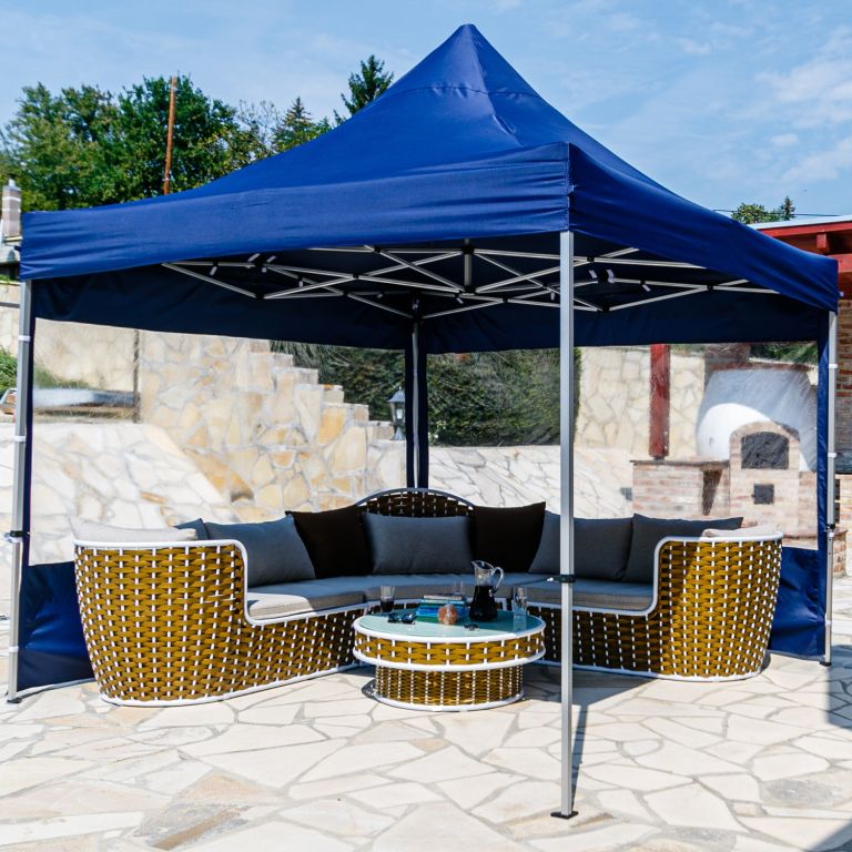 Rychlosestavitelný zahradní párty stan, modrá barva.