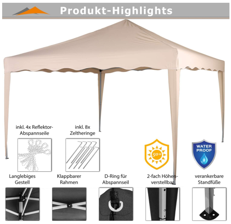 Náš skládací pavilon INSTENT "Basic" nabízí rozměry střechy a postavené 3 x 3 m a je výškově nastavitelný.