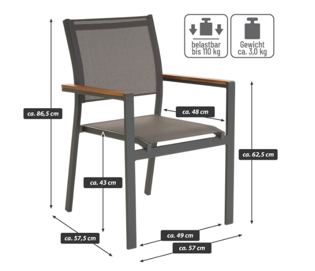 Obdržíte stohovatelnou zahradní židli, kterou samozřejmě můžete využít i jako křeslo pro hosty, na terasu nebo balkonové křeslo.