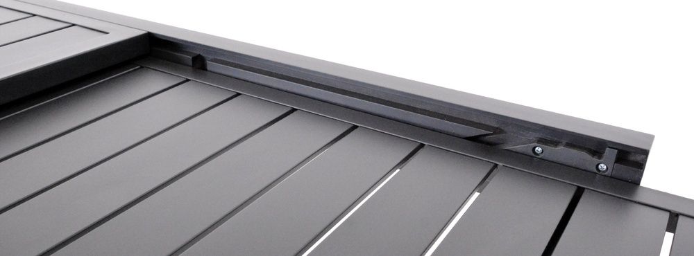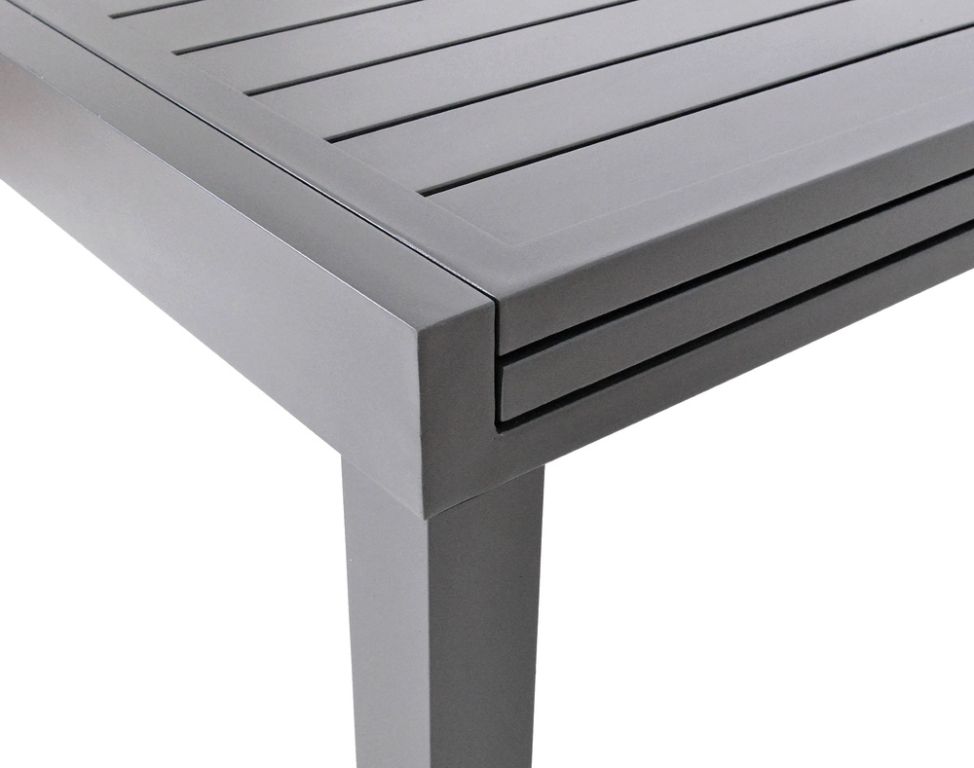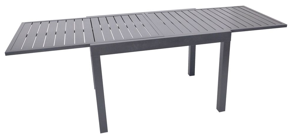 Hliníkový stůl v černém provedení, který je rozkládací. Moderní stůl, který skvěle zapadne do každého exteriéru či interiéru. Stůl má díky použitým materiálům a modernímu vzhledu opravdu široké využití, je vhodný pro vnitřní i venkovní prostory - zahrady, terasy, zimní zahrady nebo třeba do uvítací haly či recepce. Díky jednoduché montáži, budete moci již po chvíli stůl naplno využít. Jednoduchý je i mechanismus rozložení.