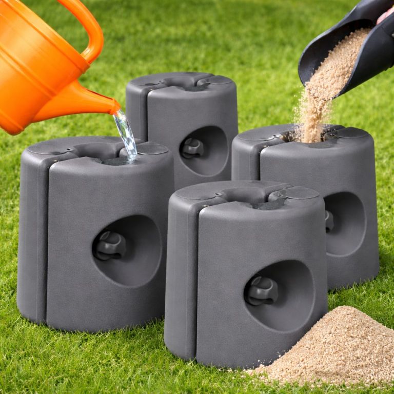 Praktická sada závaží pro lepší ukotvení party stanu. Snadné plnění a univerzální použití pro nohy o průměru 20 až 40 mm.