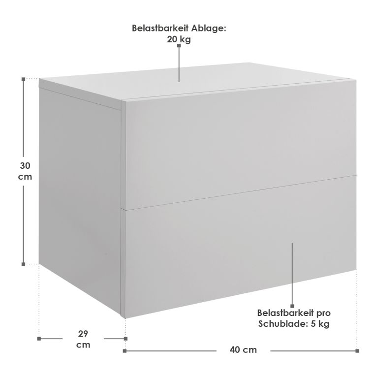 Závěsný noční stolek 40x29x30 cm, 2 zásuvky, bílý